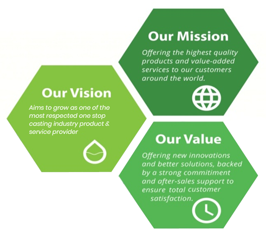 Catering to foundry industry remains the core of our business. We select qualified employees and highest quality manufacturers as our supply chain partners who are known in the field of ferrous and non-ferrous casting industry.